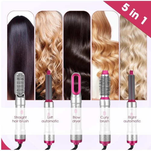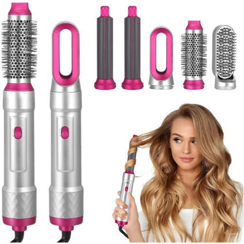 • 【𝗝𝘂𝗲𝗴𝗼 𝗱𝗲 𝗖𝗲𝗽𝗶𝗹𝗹𝗼𝘀 𝗱𝗲 𝗔𝗶𝗿𝗲 𝗖𝗮𝗹𝗶𝗲𝗻𝘁𝗲 𝟱 𝗲𝗻 𝟭】El cepillo secador de pelo tiene 5 cabezales de cepillo extraíbles: 1 secador de pelo, 1 cepillo alisador, 1 cepillo redondo, 2 rizadores. Se pueden utilizar para secar, alisar, rizar, dar volumen y peinar, un conjunto de equipos que satisface sus diferentes necesidades. El cabezal del cepillo se puede reemplazar fácilmente con solo tocar un botón en el cepillo.