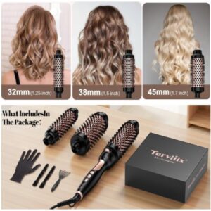 • 【𝗖𝘂𝗶𝗱𝗮𝗱𝗼 𝗱𝗲 𝗜𝗼𝗻𝗲𝘀】El cepillo de aire caliente de 1000W tiene una fuerte potencia eólica, libera una gran cantidad de iones negativos, equilibra la electricidad estática, previene el encrespamiento del cabello y hace que el cabello sea más brillante. Crea rizos llenos, suaves y de apariencia natural sin calor excesivo y reduce el daño del cabello.