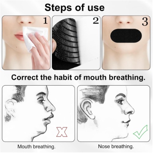 Reduce el ronquido: Estas bandas para dormir en la boca pueden ayudarte a corregir el mal hábito de abrir la boca para respirar durante el sueño, y ya no tendrás la boca seca, el dolor de garganta y la respiración dificultosa.