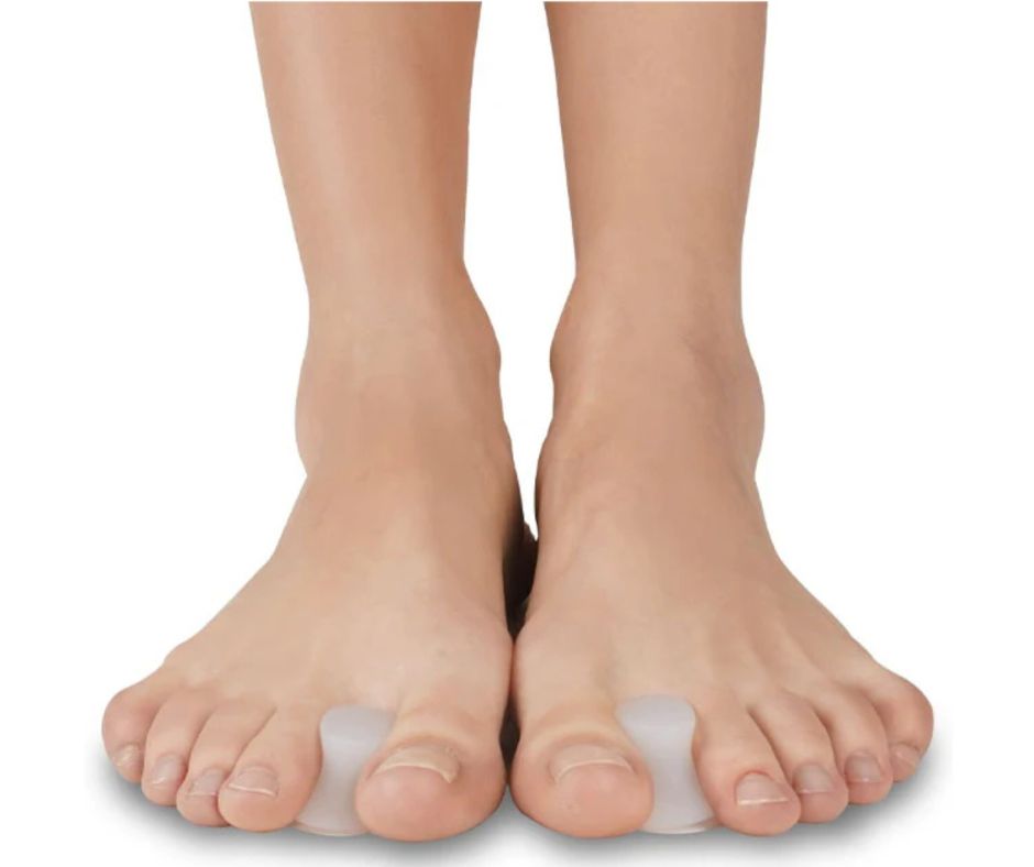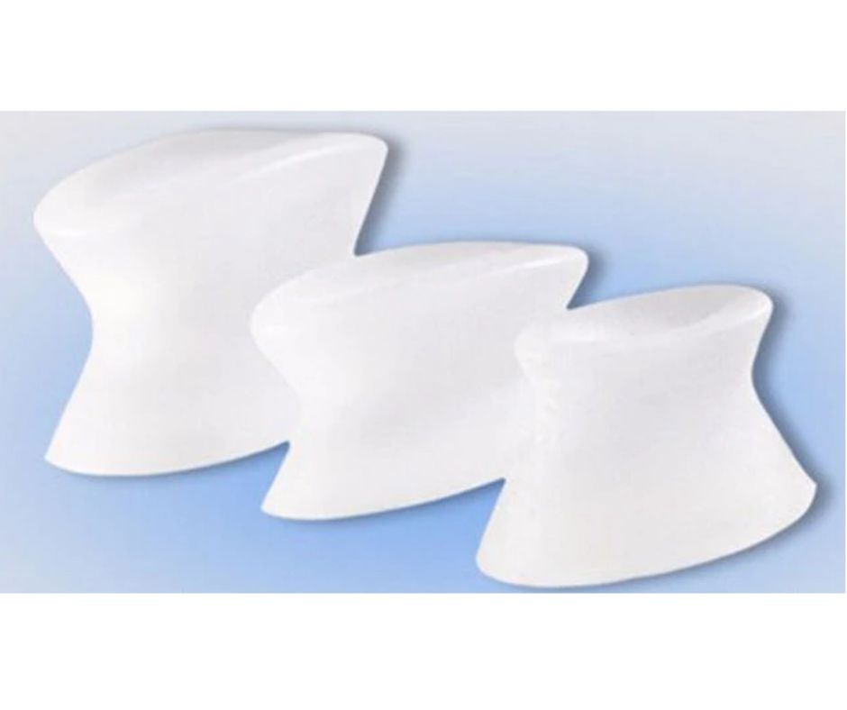 Corrector de juanetes fabricado en gel de silicona de alta calidad, suave al tacto con la piel que se posiciona entre el dedo gordo y el segundo dedo del pie permitiendo realinear la desviación lateral del dedo gordo, aliviando el dolor y previniendo la superposición de los demás dedos.