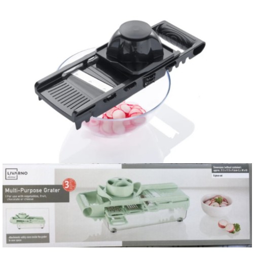 El juego incluye 5 accesorios diferentes: rallador, rebanador grueso, rebanador fino y juliana.