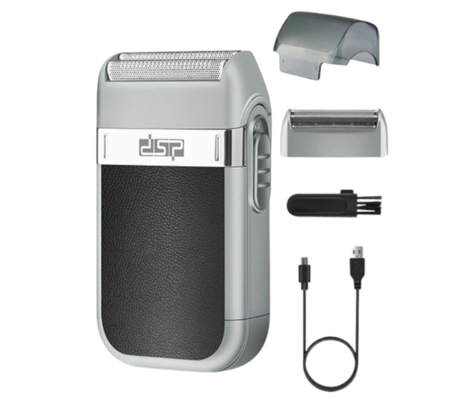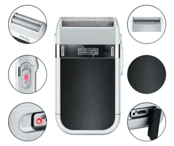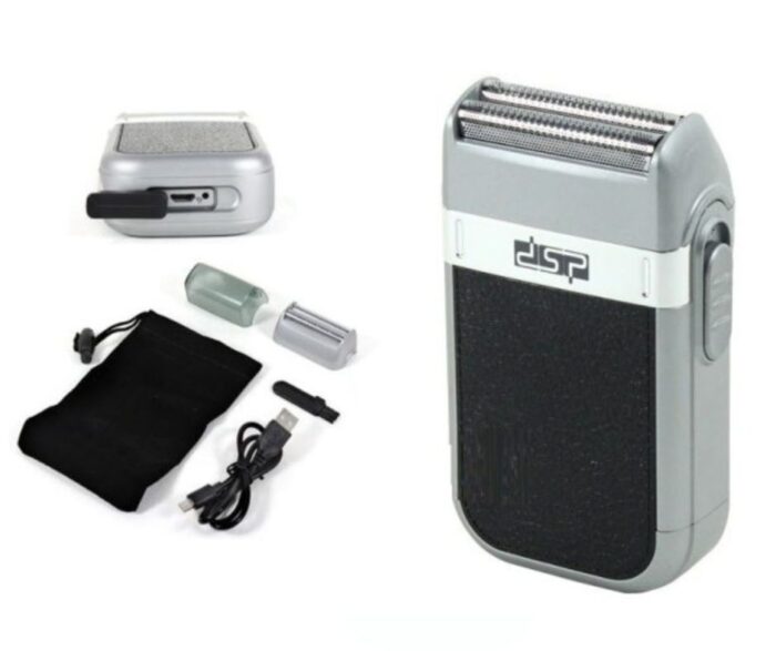 Afeitadora recargable con doble cuchilla y diseño innovador.